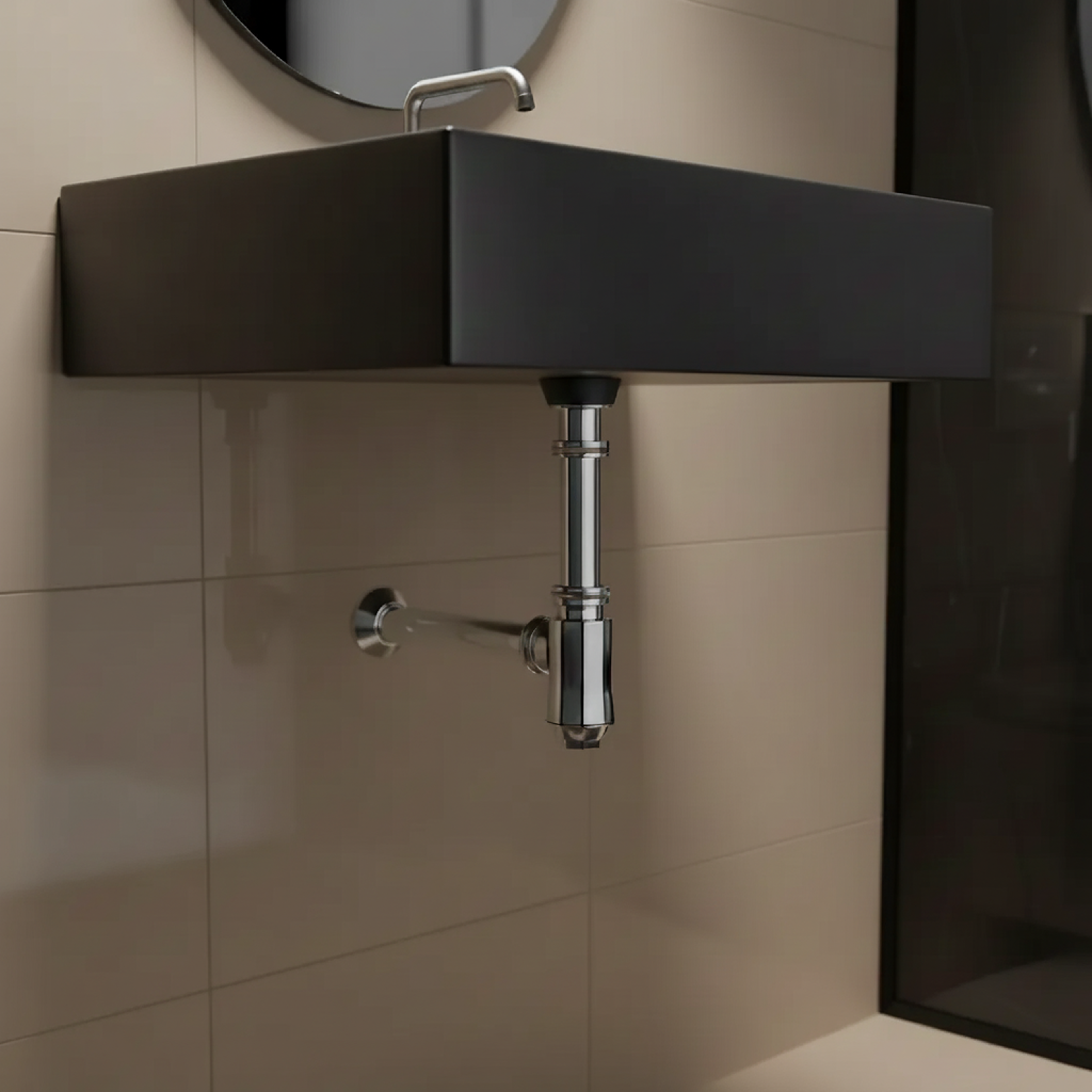 Space-saving design: Bottle traps are more compact than traditional P-traps, making them ideal for installations where the plumbing is visible, such as with pedestal or wall-hung basins.