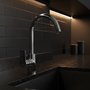 High arch: The swan neck design features a high arc, which provides ample clearance underneath the tap for washing large pots, pans, or tall vases.