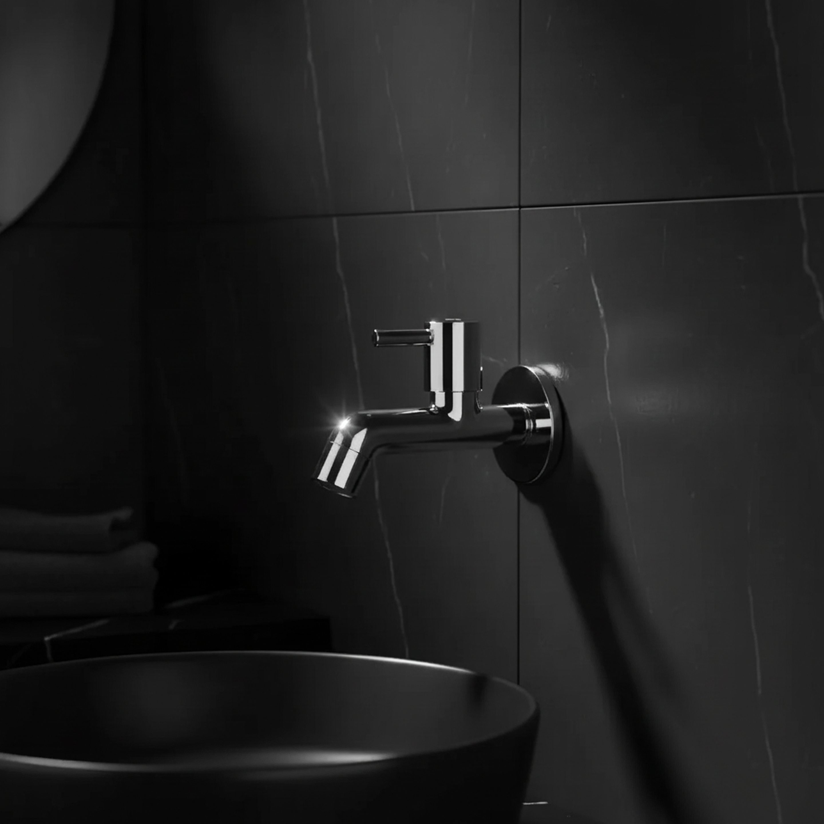 Design: Features a short spout and is mounted directly to the wall. The wall flange, a decorative and functional plate, provides a neat, finished look by concealing the plumbing connections where the tap meets the wall.