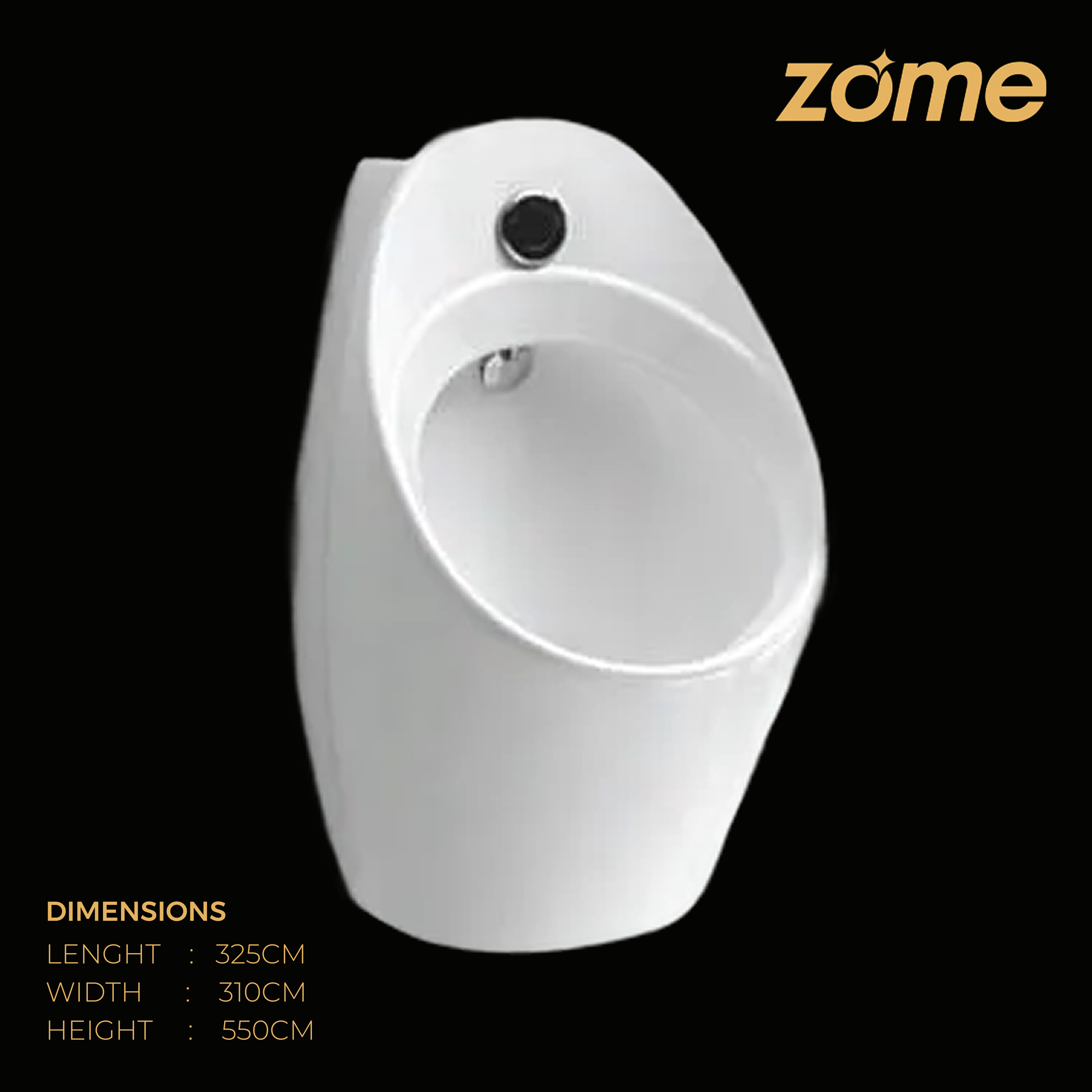 L325 x W310 x H550 mm The "SENSO URINAL" is a wall-mounted urinal that combines a modern, sleek design with intelligent, sensor-activated technology. It is often part of an "Italian Collection," such as the Hindware Senso series, and is designed for use in modern commercial or residential restrooms.