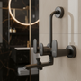 with Connecting Legs & Flanges Wall Mixer: This faucet system is designed to be installed directly into the bathroom wall rather than on a countertop.