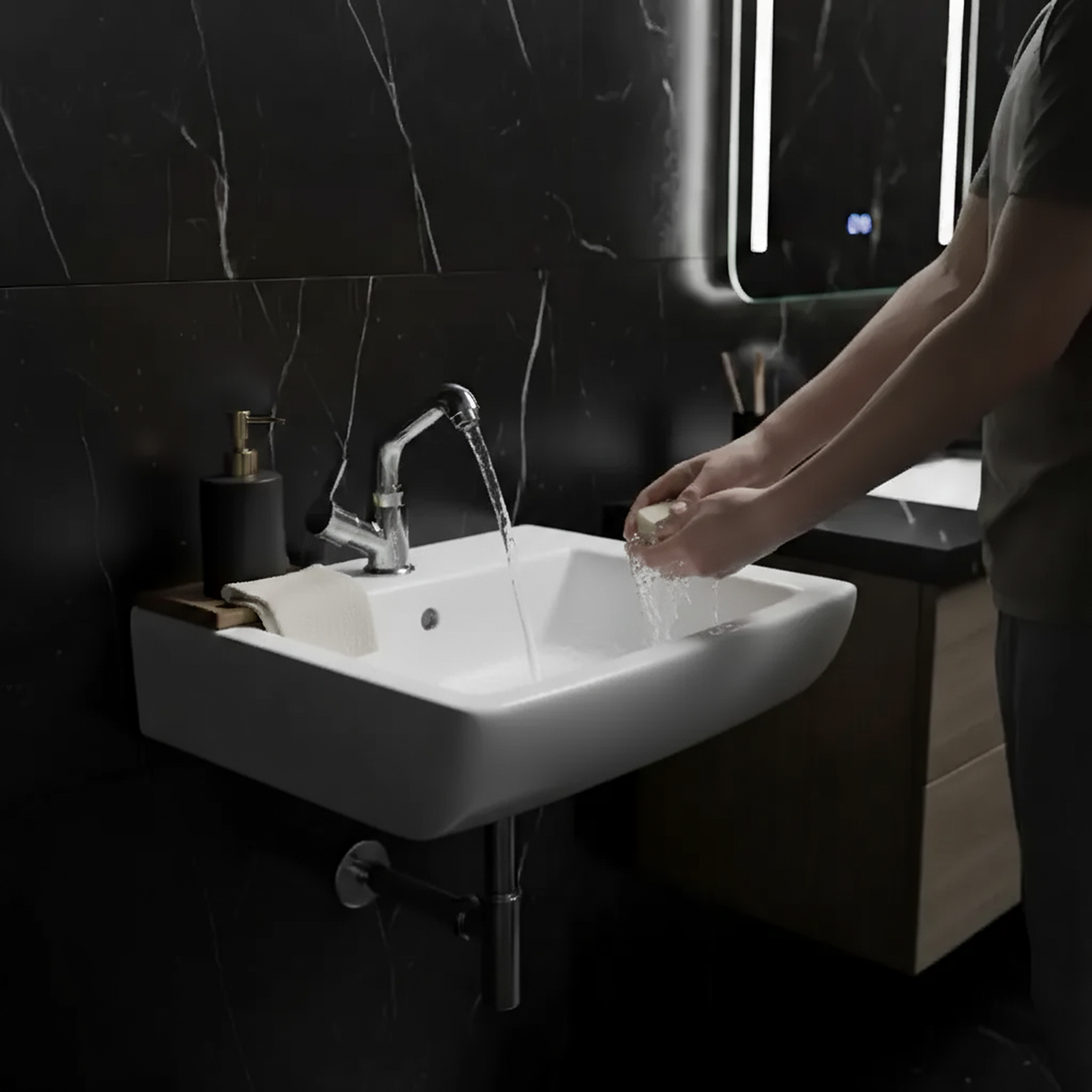 Design: Often features a contemporary design, which can be oval or rectangular with rounded edges. The design is minimalist, without a pre-drilled tap hole (as the tap is usually a tall boy mixer or wall-mounted mixer installed separately).